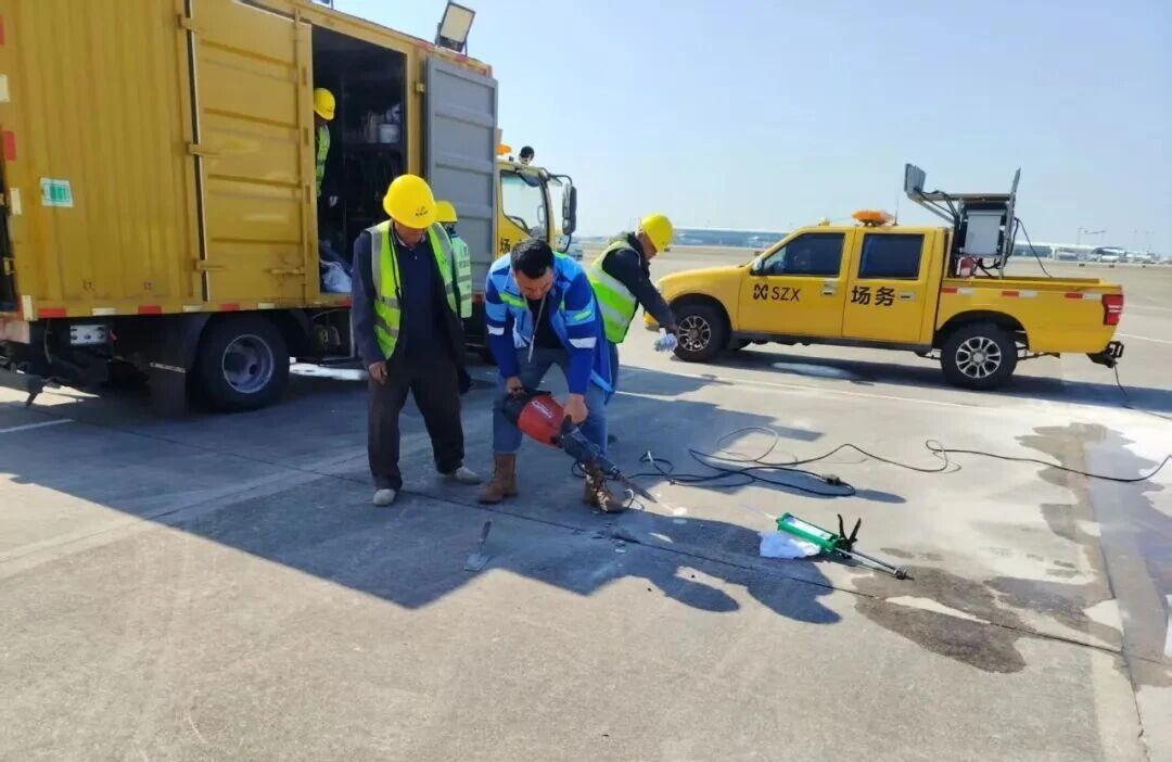 場務工作人員對道面進行施工(本文圖片均由深圳機場提供)